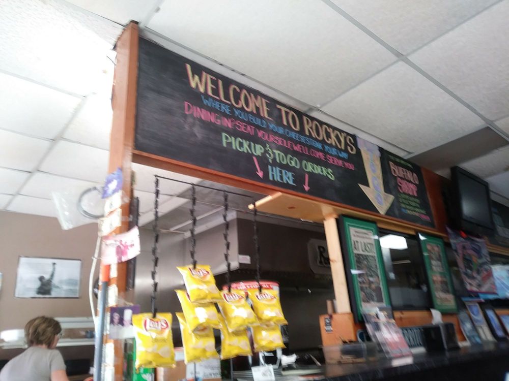 “ I was hungry, I didn't know what I wanted but knew that I wanted something new. As we got to Sr54, I saw the sign for Rocky's and decided that is what it would be. When we came in, there was one other couple inside eating, so we sat down and they brought us the menu, which the beau and I perused. After a few minutes we placed our order for a small sandwich with onions and mushrooms, an order of fried mushrooms and a diet coke. Both of us got the same thing. It didn't take long for the fried mushrooms to show up, a REALLY large order for 2 people to share and they were amazing. Their ranch dip is SO GOOD. And when the sandwiches came out, You'd have thought we were starving, we inhaled them, they were that dang tasty. The food is good, made to order and fresh. This place is now on my radar and you know i'll be back. Be aware, if you eat in, they do not do cups of anything. No cups of ice or water, it's all bottled. Saves on cost. ”